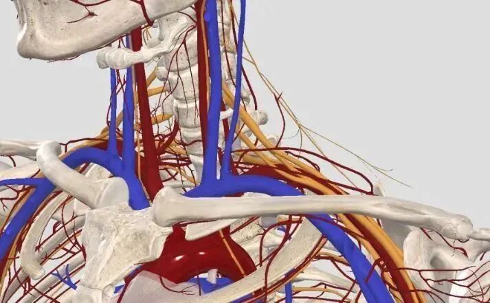 颈部侧面,甚至颈部前侧不建议自己放松。因为这些位置神经和血管非常密布,如果感觉到侧面这个位置有些紧张,可以用牵拉的方法放松,但是千万不要用筋膜枪去直接打颈椎的侧面,这是非常容易出危险的。